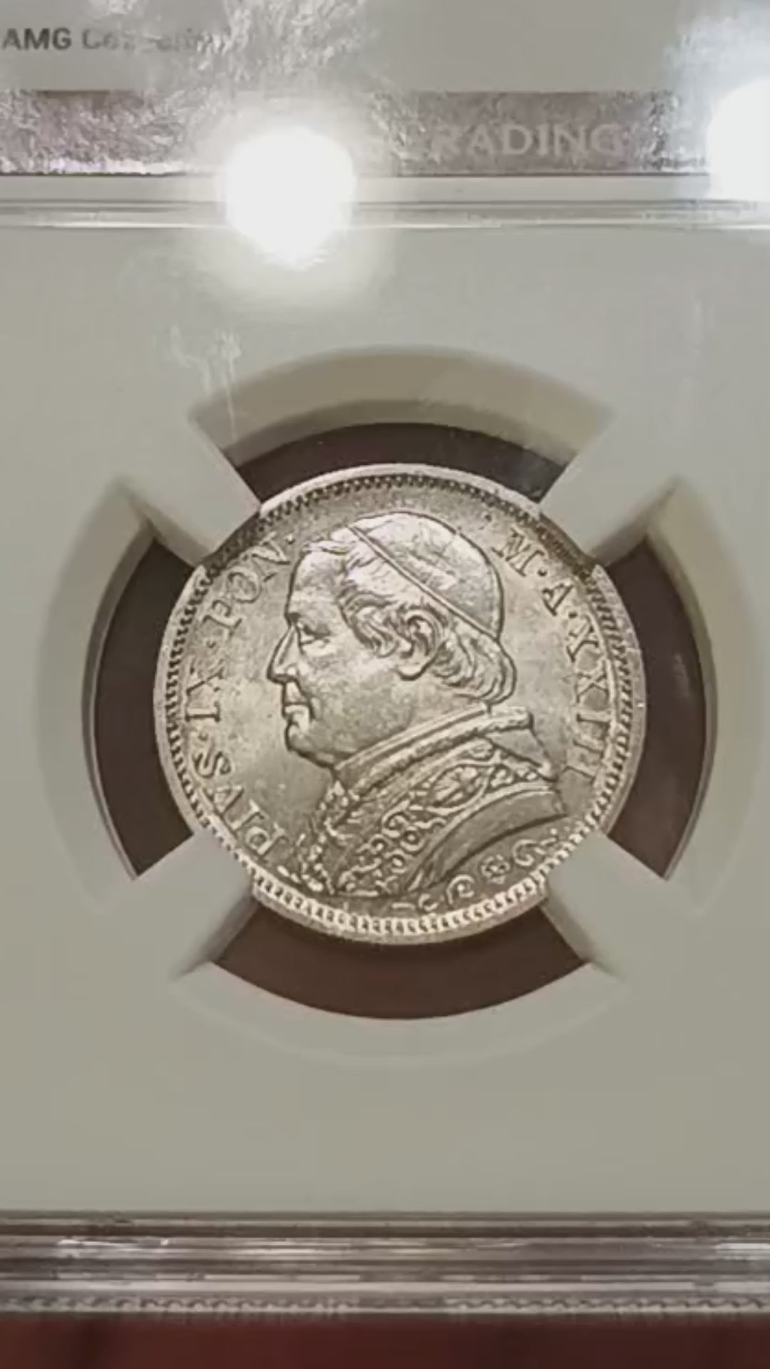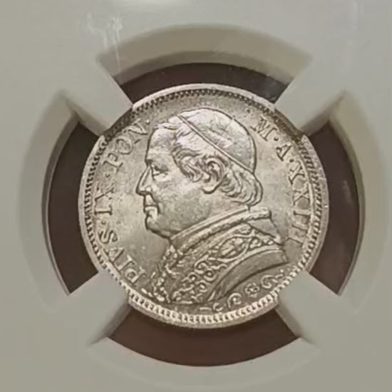 1 LIRA 1868 XXIII STATO PONTIFICIO PIO IX MONETA IN ARGENTO CCG MS63 qFDC
