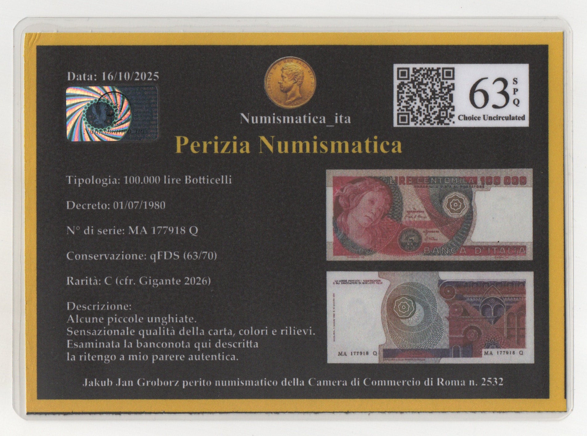 100000 LIRE BOTTICELLI 01/07/1980 qFDS