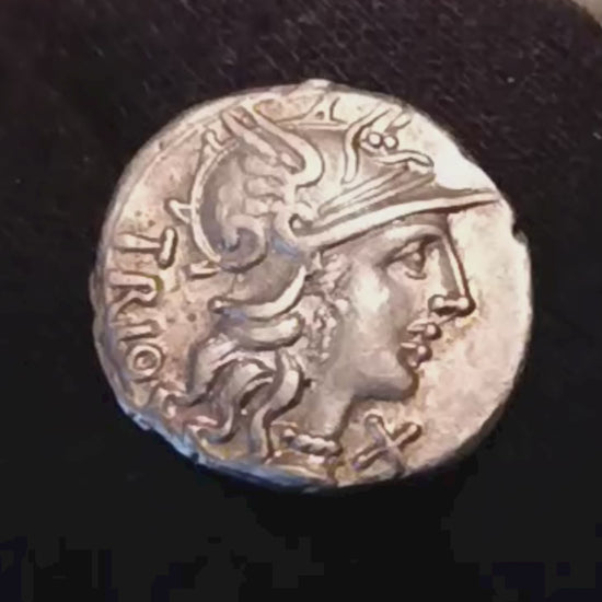 DENARIO CN. LUCRETIUS TRIO 136 A.C. ANTICA MONETA ROMANA IN ARGENTO R2 qSPL