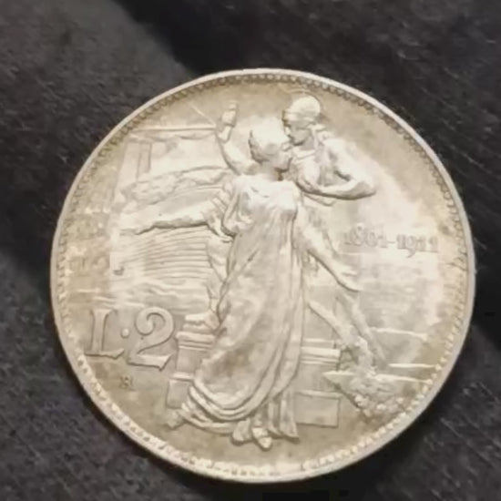 2 LIRE 1911 CINQUANTENARIO qFDC PATINA A BERSAGLIO MONETA IN ARGENTO