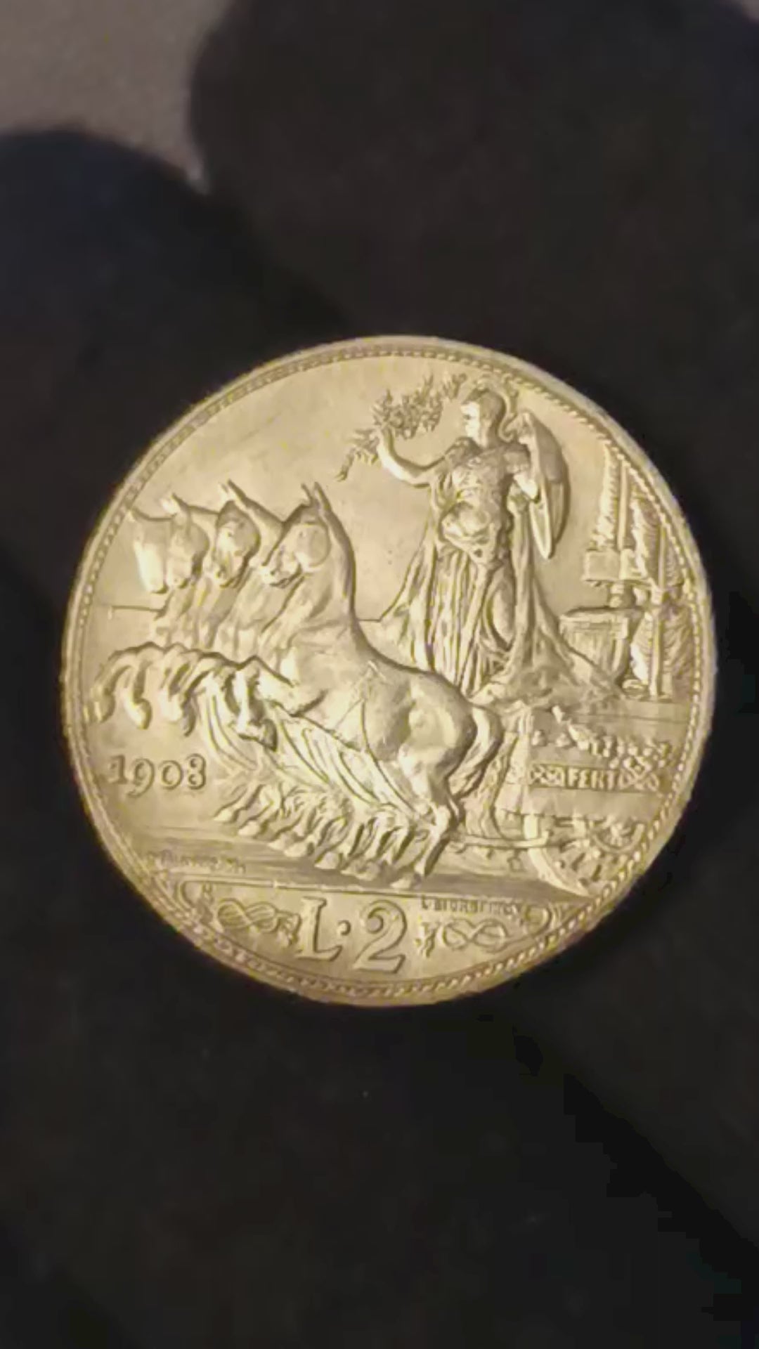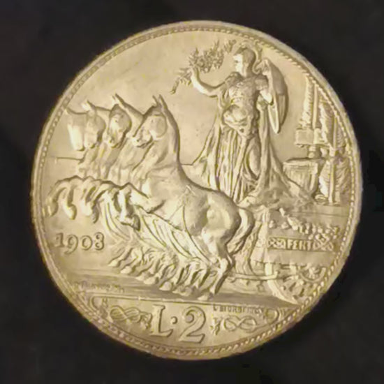 2 LIRE QUADRIGA VELOCE 1908 FDC MONETA IN ARGENTO REGNO D'ITALIA VITTORIO EMANUELE III
