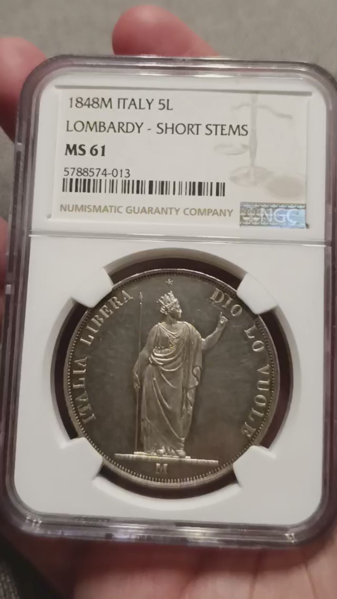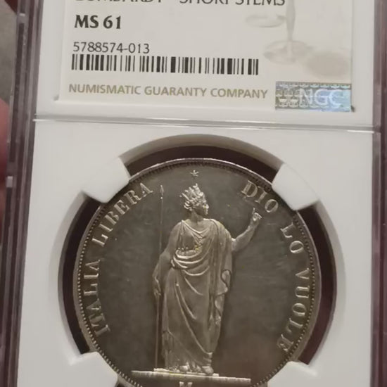 5 LIRE 1848 GOVERNO PROVVISORIO DI LOMBARDIA NGC MS61 MONETA IN ARGENTO