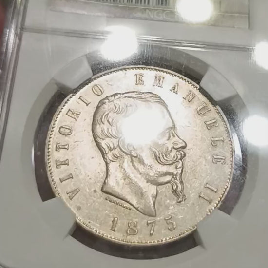 5 LIRE 1875 ROMA NGC AU58 SCUDO VITTORIO EMANUELE II MONETA IN ARGENTO