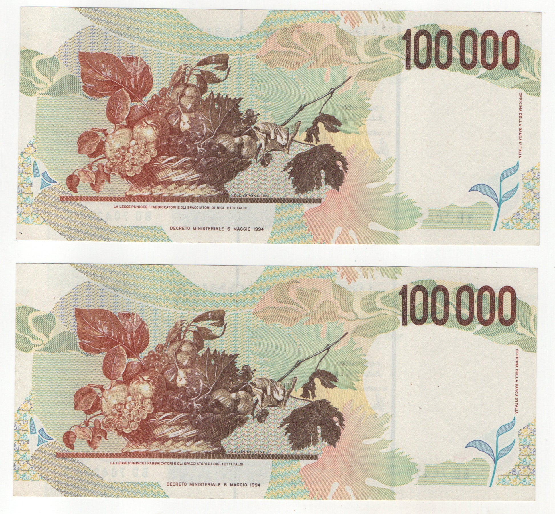 100000 LIRE CARAVAGGIO 2° TIPO LETTERA D 1997 CONSECUTIVE DA MAZZETTA